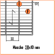 bei der Maschenweite 30/10 die Tragstäbe im Abstand von 30 mm und die